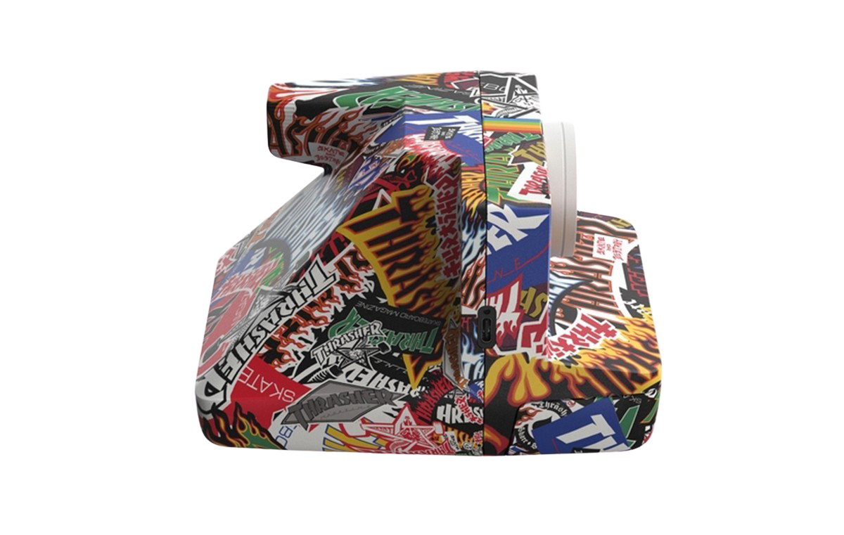 Halte das Chaos des echten Lebens fest. Die Polaroid Now Generation 3 – Thrasher Edition ist eine wilde Kreuzung aus Kamera und Sticker-beklebtem Skateboard. Mit Wassertransferdruck beschichtet – so ist jedes Modell ein Unikat. Die klassische Analogkamera, optimiert für das Chaos des echten Lebens und für schärfere Fotos bei heller Beleuchtung.
