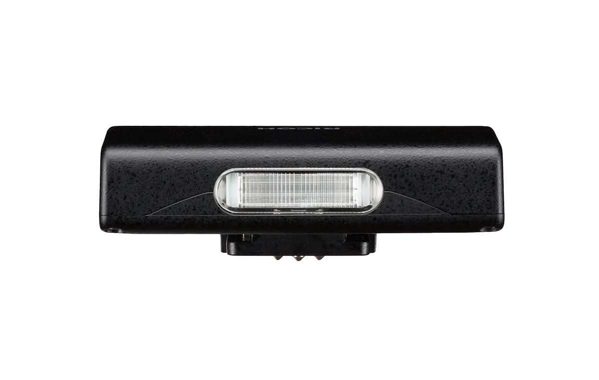 Externer Blitz mit Leitzahl 3 (ISO 100-m), der ein ultrakompaktes und leichtes Design hat und eine automatische Lichtsteuerung ermöglicht, wenn er an der RICOH GR IV angebracht ist. Leicht zu transportieren und kann in der Tasche getragen werden, während sie an der Kamera befestigt ist. Ca. 270 Blitze (bei voller Ladung).
